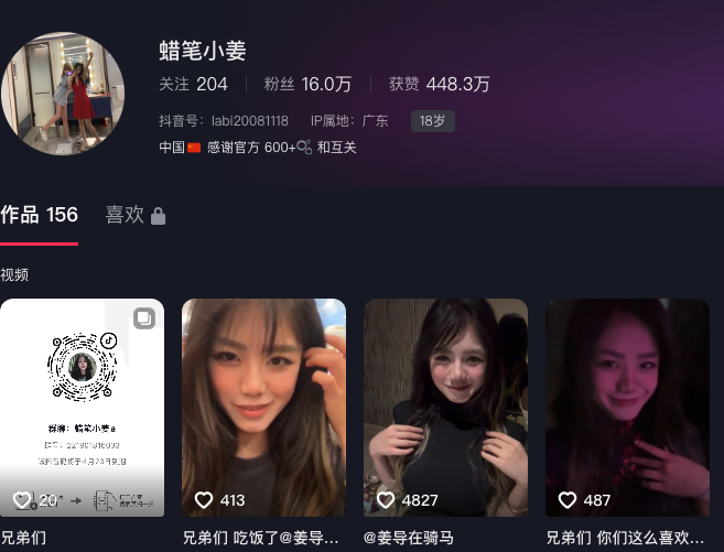 抖音16万粉丝眼镜萌妹高学历网红蜡笔小姜被曝线下高价陪睡
